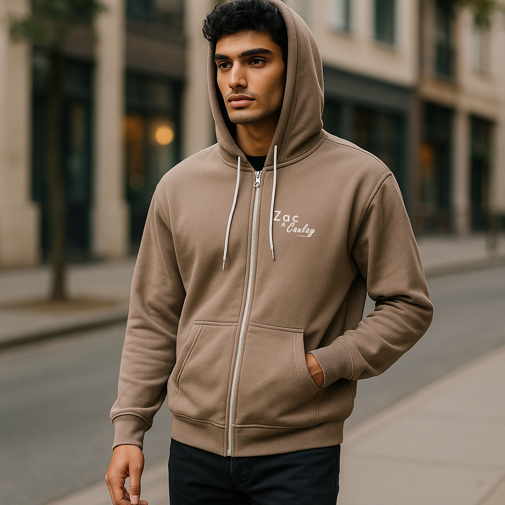 Be the first to review “Unisex Zipped Hoodie- Script-Tan”